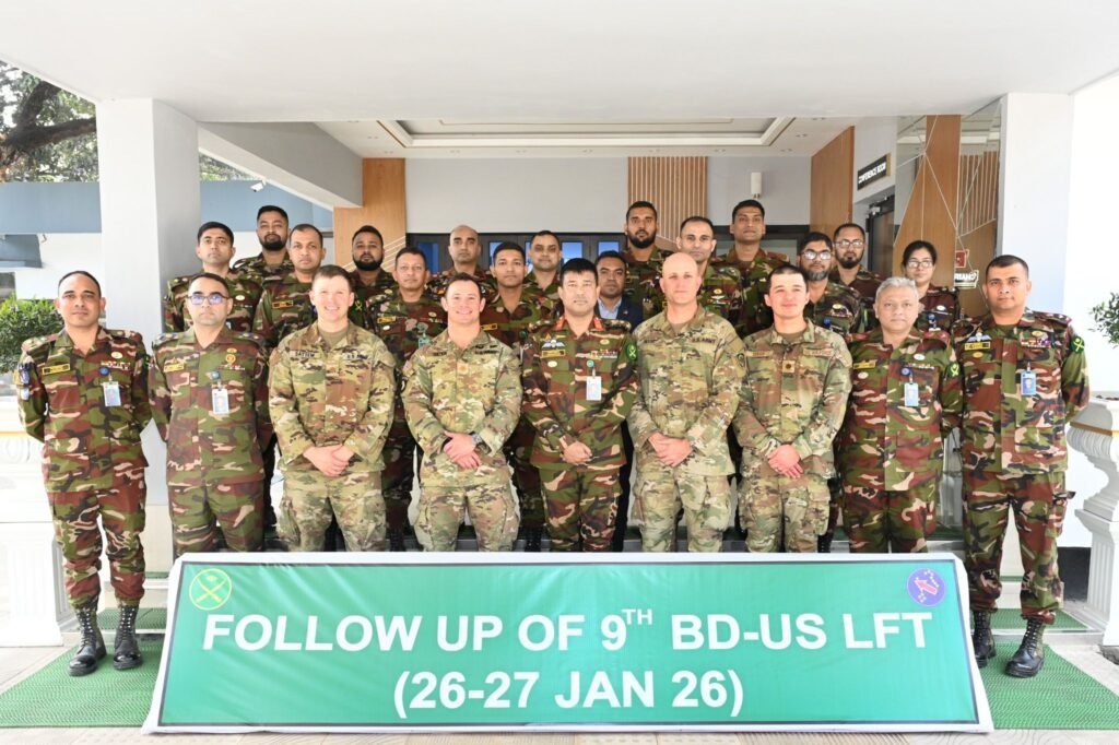 Dhaka, 28 January 2026 – The Bangladesh–United States 9th Land Forces Talks (LFT) 2026 concluded successfully on January 27 following a two-day meeting held from January 26–27 at the conference room of the Army Sports Control Board in Dhaka Cantonment. The meeting was organized as a follow-up to the 9th Land Forces Talks held in the United States from 8–10 September 2025. Senior representatives from both armies participated in the discussions aimed at strengthening bilateral military cooperation and enhancing mutual capabilities. A 22-member delegation from the Bangladesh Army was led by Lieutenant Colonel Mohammad Badrul Haque, SPP, AFWC, PSC, Engineers, from the Military Training Directorate. The four-member US delegation was headed by Major Michael Jacob Oster, Security Cooperation Officer of the United States Army Pacific (USARPAC). The opening and closing sessions were attended by Brigadier General Md. Humayun Kabir, SUP (Bar), SPP, ndc, psc, MPhil, Director of the Military Training Directorate. During the talks, both sides held extensive discussions on military cooperation, capacity building, and strategic engagement. Emphasis was placed on training exchanges, strengthening the use of advanced military technologies and equipment, and expanding opportunities for joint exercises and drills. The delegations explored innovative training methods to further enhance operational effectiveness and professionalism. The representatives reaffirmed their commitment to strengthening strategic cooperation between the two armies. They also agreed on the importance of working together to contribute to regional security and to enhance joint preparedness for responding to natural and man-made disasters. Discussions further highlighted the need for technological cooperation and preparedness in addressing global security challenges, which both sides noted would play a vital role in promoting regional peace and stability in the future. The successful conclusion of the 9th LFT reflects the growing depth of defense cooperation between Bangladesh and the United States and their shared commitment to advancing military professionalism, interoperability, and regional security.