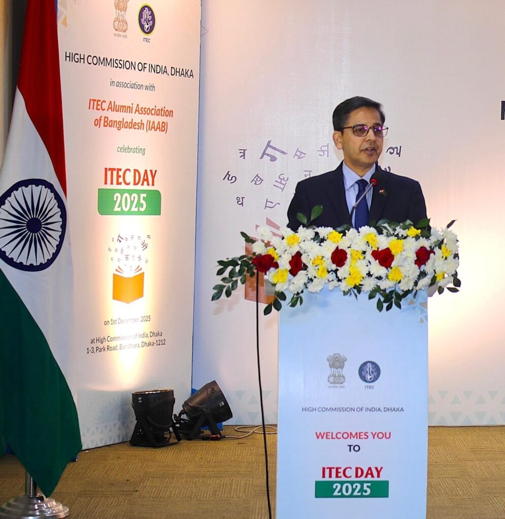 Dhaka, 02 December 2025 – The High Commission of India in Dhaka, in partnership with the ITEC Alumni Association of Bangladesh (IAAB), hosted a reception and get-together on Monday to celebrate Indian Technical and Economic Cooperation Day (ITEC Day 2025). The event, held at the High Commission premises, brought together around 150 Bangladeshi alumni of various ITEC training programmes. Speaking at the gathering, Indian High Commissioner Pranay Verma described ITEC as a reflection of India’s commitment to South-South cooperation, offering capacity-building and human resource development programmes tailored to the needs of partner countries. Noting that over 5,000 professionals from Bangladesh have received ITEC training over the years, the High Commissioner thanked the alumni for acting as both a bridge of friendship and collaboration and a channel for exchanging expertise between India and Bangladesh. He also appreciated the role of the ITEC Alumni Association of Bangladesh (IAAB) in uniting former trainees under one platform. During the programme, several Bangladeshi alumni shared their training experiences in India. Representatives from partner organizations—including BCSIR, BAEC, SPARSO, and the Bangladesh Land Port Authority (BLPA)—were also present. The event concluded with a cultural performance by Bangladeshi artistes, highlighting the long-standing cultural ties between the two neighbouring countries. ITEC, launched in 1964 as a flagship initiative of the Government of India, forms part of India’s Development Assistance Programme. It currently supports more than 160 countries worldwide, offering over 12,000 training slots annually across more than 300 specialized courses in areas such as agriculture, public administration, governance, IT, data analytics, remote sensing, renewable energy, advanced computing, and more.